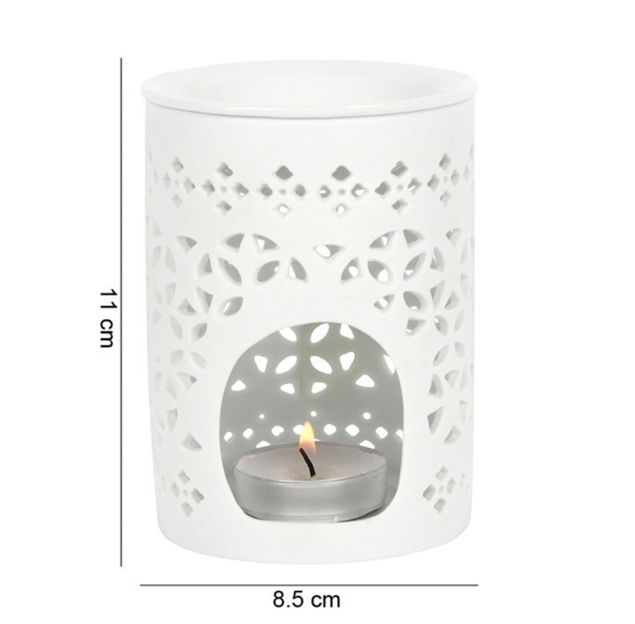 This elegant matte cut out oil/wax burner will compliment a wide variety of interior decor schemes.