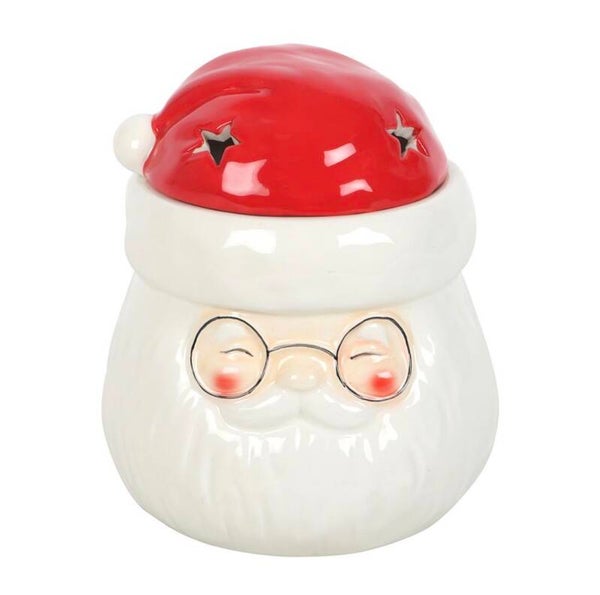 Add a jolly touch to the home with this Santa Claus-shaped ceramic oil burner and wax warmer. Featuring a cheerful Santa design, simply remove his hat and add festive essential oils or wax melts to the dish, placing a tealight candle below to fill the home with Christmas spirit. A sweet addition to any seasonal decor. Do not use more than one tealight and remove lid when in use. Never leave a lit burner unattended and allow to cool fully before handling. Designed by Something Different Wholesale and part o